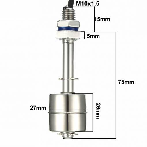 Balíček obsahuje jeden Mini vertikálny spínač hladiny vody s plávajúcim spínačom - 75 mm.