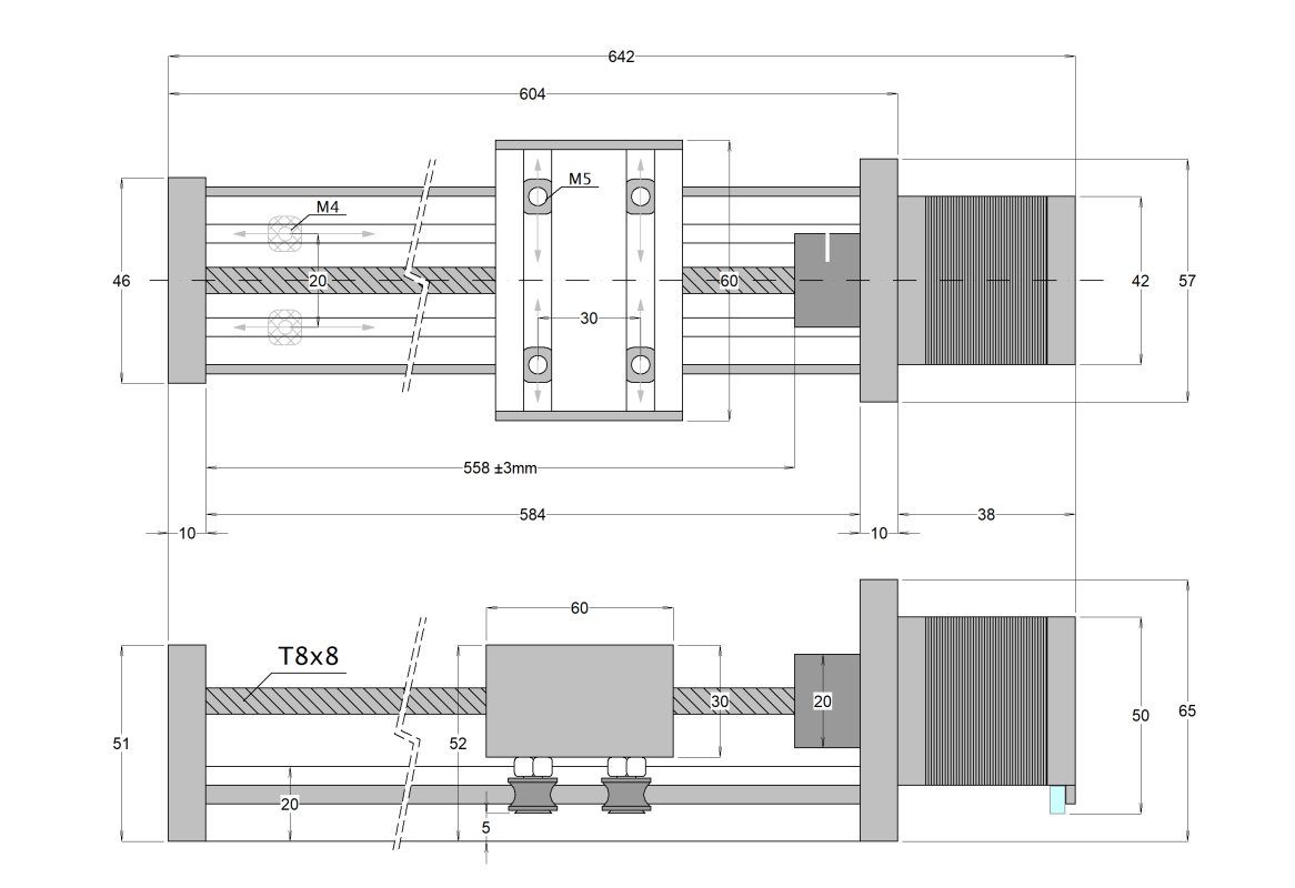 CNC pohon s horizontálnym zaťažením až 50kg. Vysoká presnosť a odolnosť pri zaťažení. Nízky trenie odpor.