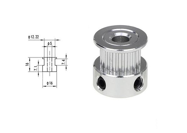 Balíček obsahuje jednu remenicu GT2 pre remeň 6 mm s vnútorným priemerom 5 mm a 20 zubami.