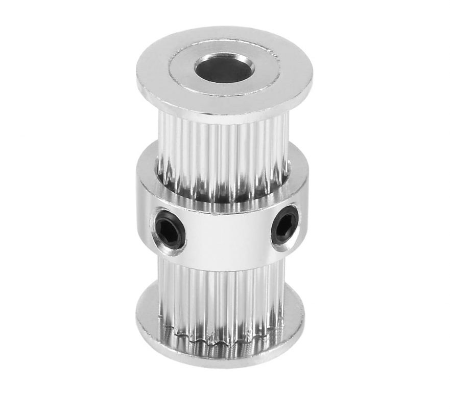 Balíček obsahuje jednu dvojitú remenicu GT2 pre remeň 6 mm s vnútorným priemerom 5 mm a 20 zubami.