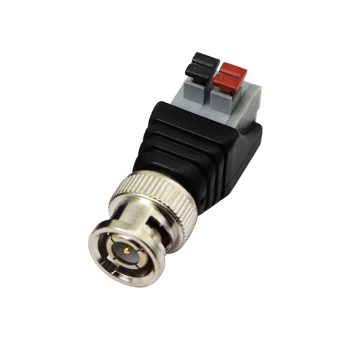 Adaptér BNC s pružinovou svorkovnicou. Konektor má poniklované kontakty a je vhodný na pripojenie kábla z ľubovoľného zariadenia bez nutnosti spájkovania.