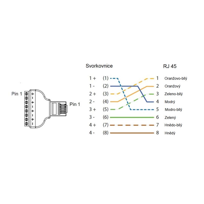 Balenie obsahuje jeden adaptér RJ45 na svorkovnici 8 pinov - Samec