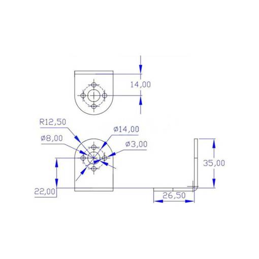 Držák je navržen pro použití se servomotory jako MG995, MG996 nebo S3003 a nabízí univerzální sadu montážních otvorů pro různé typy uchycení – jak na robotická ramena, tak podvozky, základny nebo jiné mechanismy. Díky kompaktním rozměrům je vhodný i do menších konstrukcí.