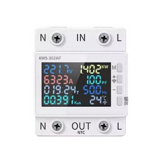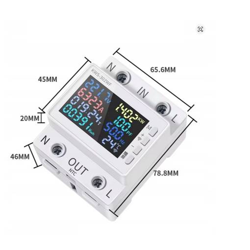 - 1x Wifi chytrý ochranný spínač s meraním spotreby na DIN lištu s displejom - TUYA, SmartLife, 63A, 230VAC, V, A, W, kWh, °C