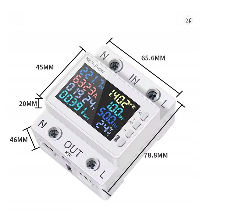 Chytrý spínač s meraním spotreby elektriny a možnosťou ovládania cez WiFi. Umožňuje zapínať a vypínať spotrebiče na diaľku, sledovať spotrebu energie a nastaviť časové plány pre automatické spínanie. Farebný displej prehľadne zobrazuje napätie, prúd, výkon i celkovú spotrebu. Prostredníctvom mobilnej aplikácie je možné sledovať históriu spotreby a ovládať zariadenie odkiaľkoľvek.
