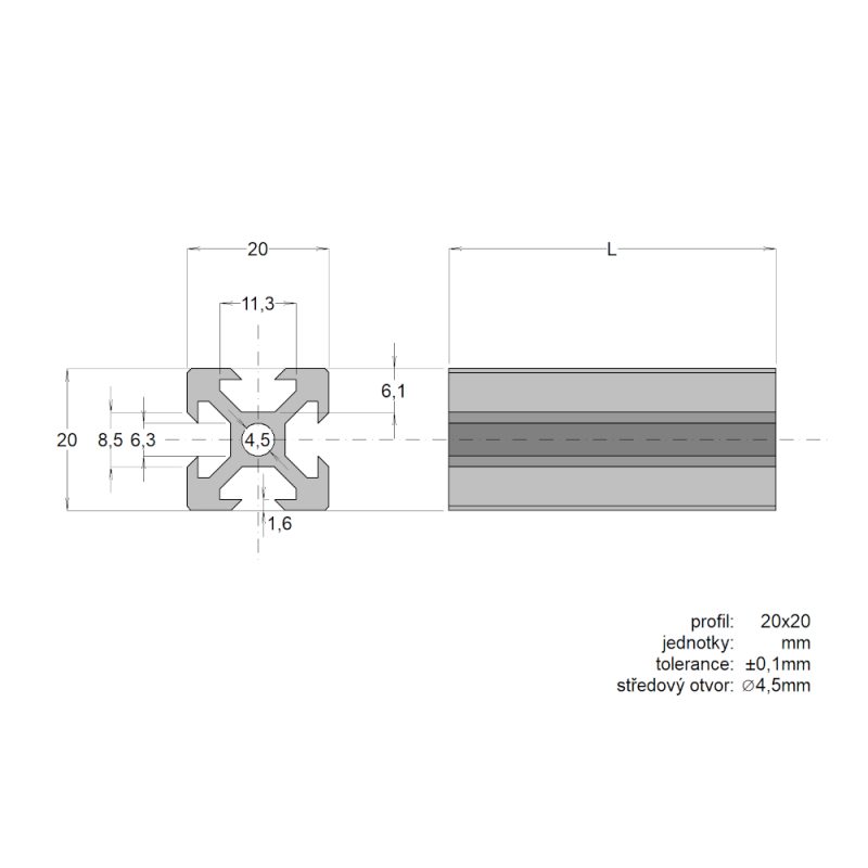 Presný hliníkový profil určený pre ľahké, ale pevné a variabilné konštrukcie. V čiernej farbe a s V-slotom určeným k pojazdom.