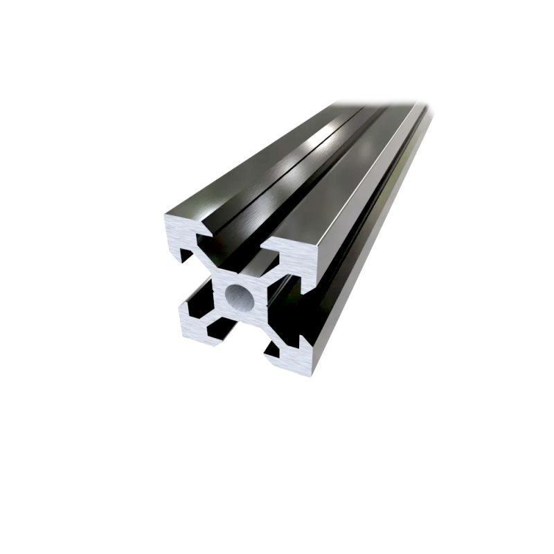Presný hliníkový profil určený pre ľahké, ale pevné a variabilné konštrukcie. V čiernej farbe a s V-slotom určeným k pojazdom.
