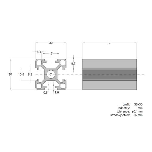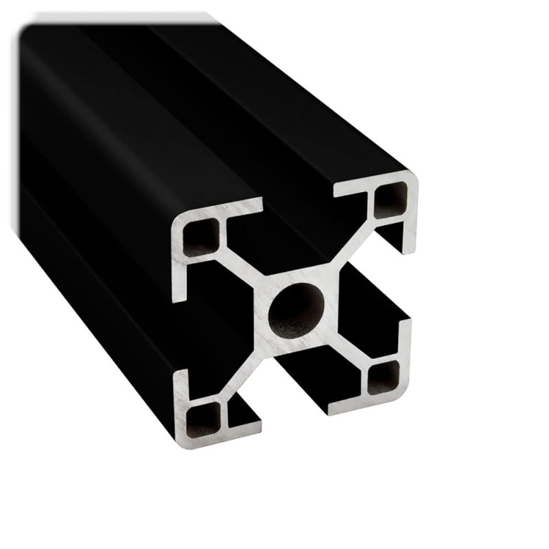 Presný hliníkový profil určený pre ľahké, ale pevné a variabilné konštrukcie. V čiernej farbe a s V-slotom určeným k pojazdom.