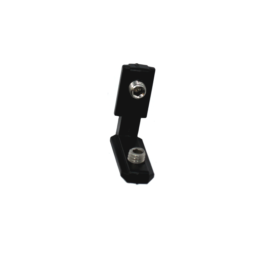 Oceľová montážna patka do drážky hliníkových profilov 20x20. Patka umožňuje naväzovať na existujúci hliníkový profil profilom ďalším pod daným uhlom. Súčasťou patky je zapustený skrutka. Celá patka aj so skrutkami sa skryje v priestore drážky a neruší tak vonkajší povrch profilu pre ďalšie montáže.