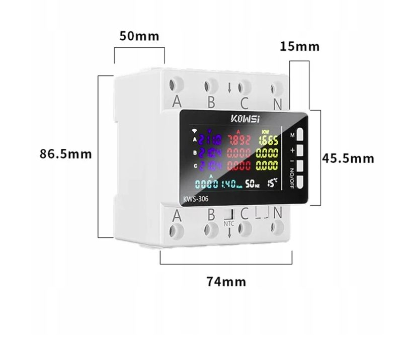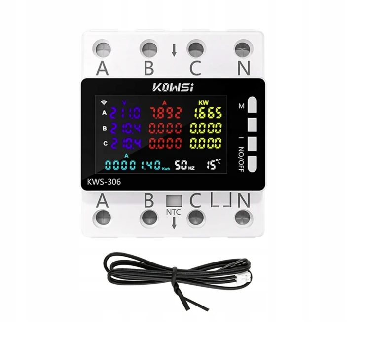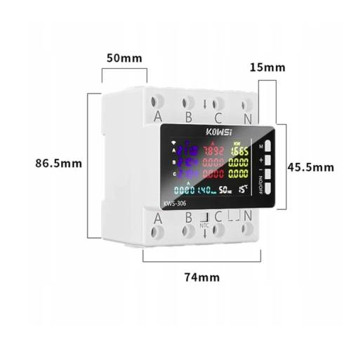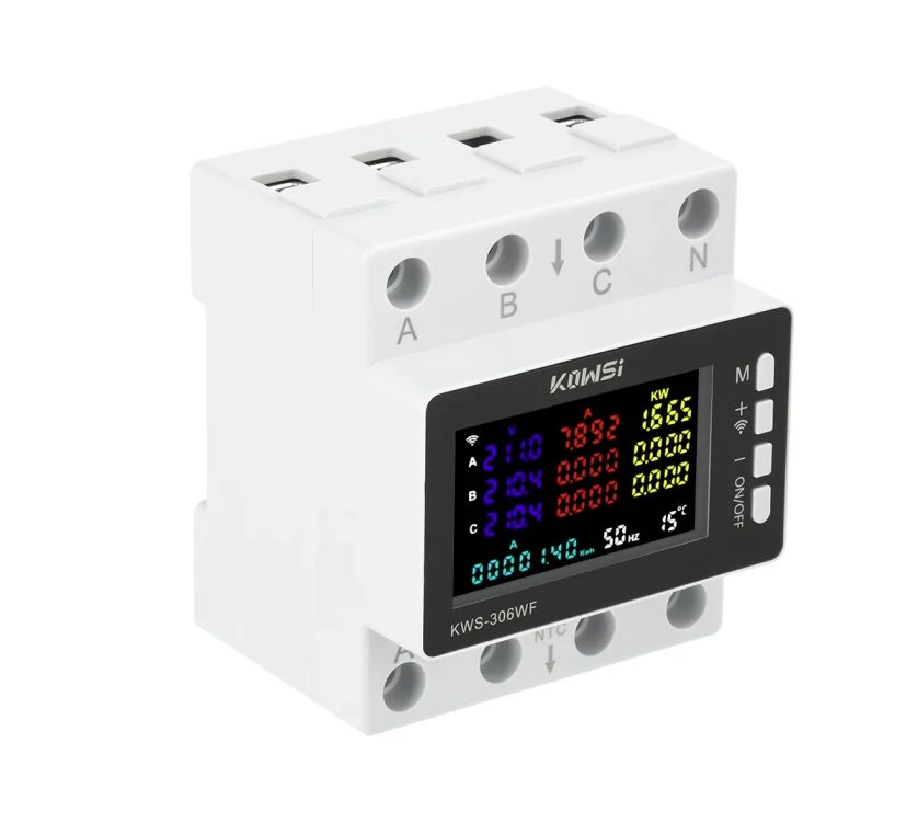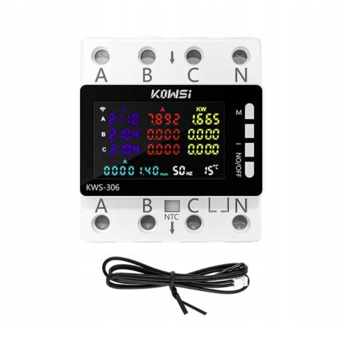 Inteligentní třífázový elektroměr KWS-306WF s WiFi a barevným LCD displejem umožňuje přesné měření napětí, proudu, výkonu i spotřeby energie. Podporuje aplikaci TUYA / Smart Life, nabízí pokročilé ochrany instalace a je určen pro montáž na DIN lištu v třífázových 4-vodičových systémech.