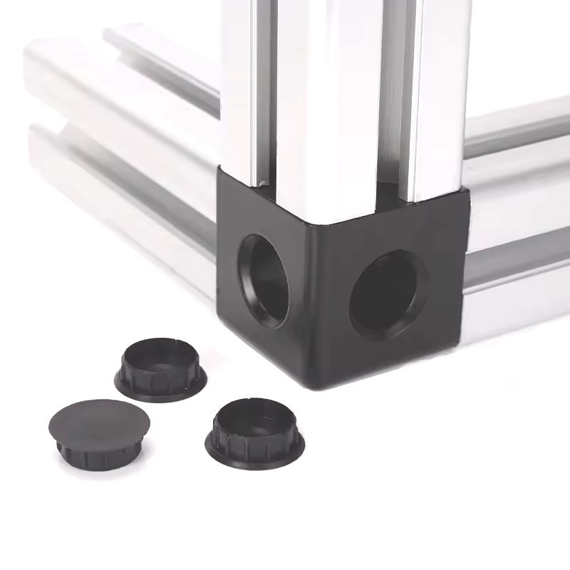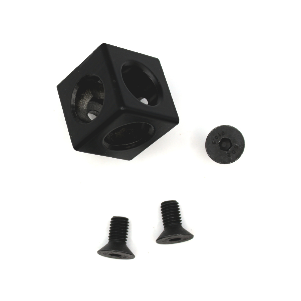 Ocelová kocka, umožňujúca rohové spojené až troch profilov v pravom uhle. Inštaluje sa z profilovej časti, zakrýva rez profilu a vytvára tak pohľadovo príjemnú a robustnú konštrukciu. Ideálna pre montáž hliníkových rámových konštrukcií.