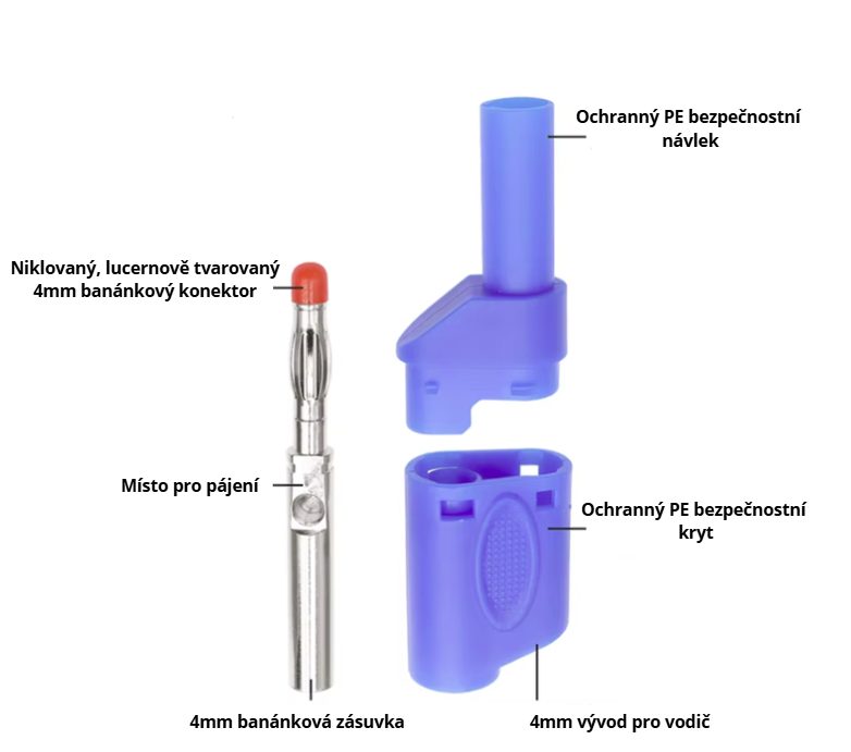 - konektor je kompatibilný s bežnými 4mm banánkovými zásuvkami