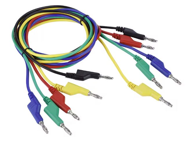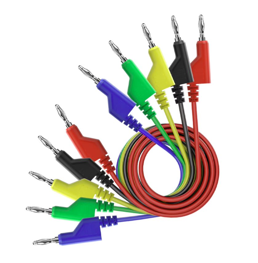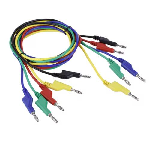 Táto sada obsahuje päť kvalitných meracích káblov s banánkovými konektormi 4 mm na oboch koncoch. Káble sú dlhé 1 meter, čo je ideálna dĺžka pre pohodlnú prácu na stole, v laboratóriu alebo pri diagnostike zariadení.