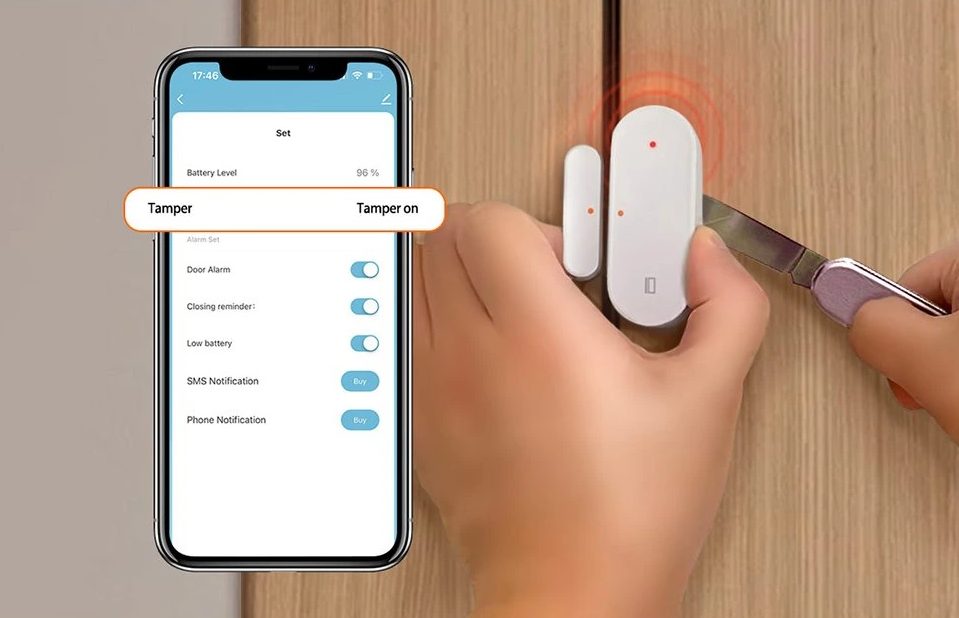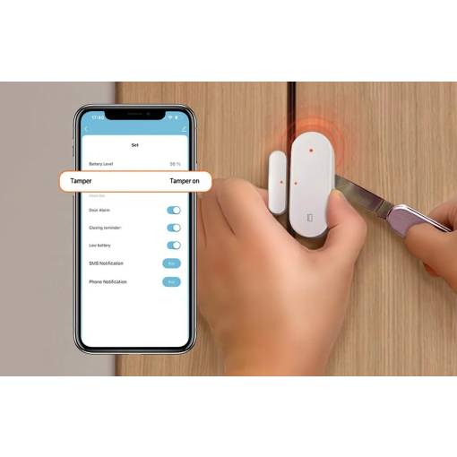 - Tamper Alarm: Ochrana proti neoprávněné manipulaci. Díky spínači na spodní straně vás senzor okamžitě upozorní, pokud se jej někdo pokusí z rámu odlepit nebo odstranit (podporováno v aplikaci Smart Life).