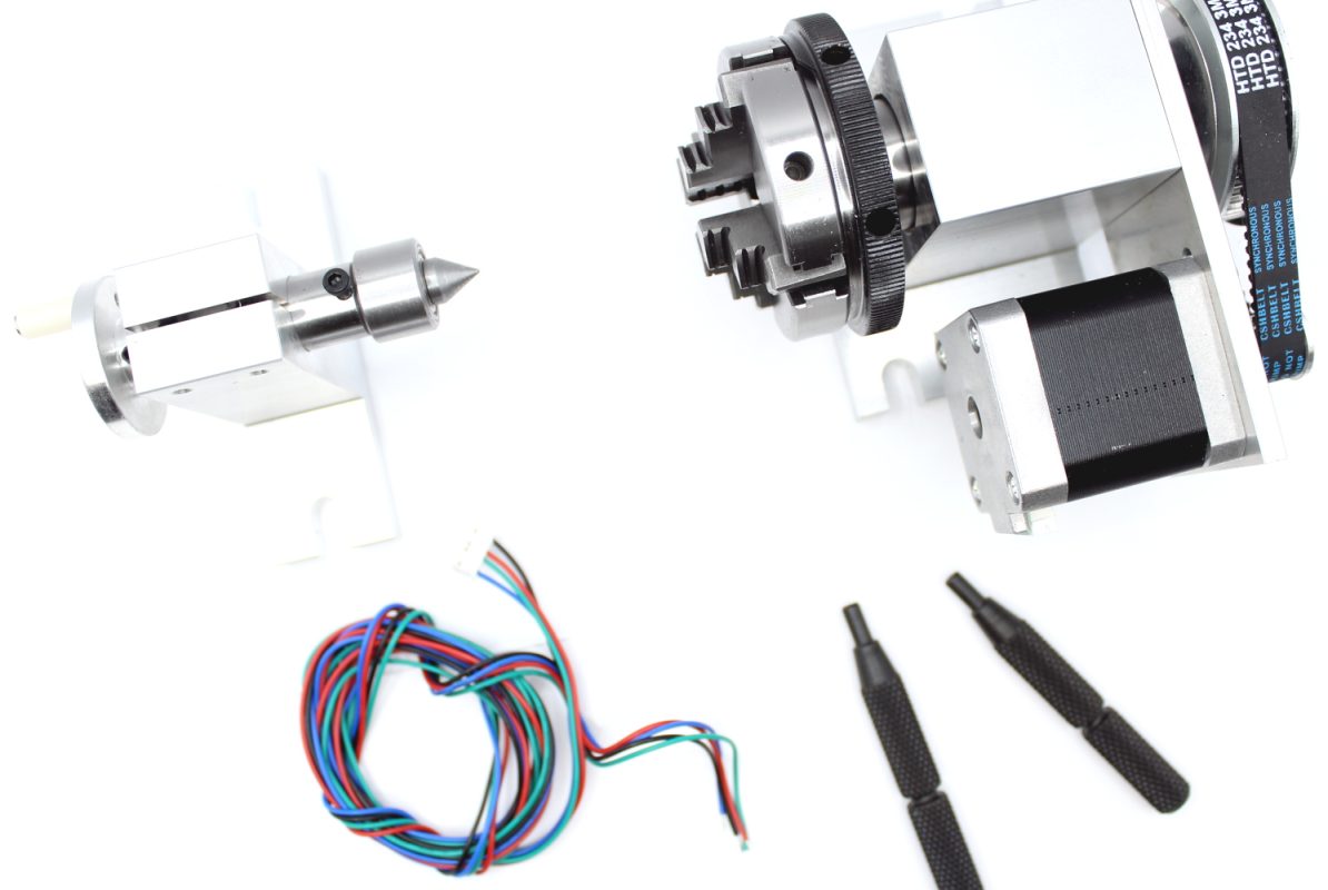 Sada kompaktného, ale precízneho sústruhu, skladajúceho sa z vretena s krokovým motorom, koníka, upínacích kľúčov a napájacieho káblika. Vhodné pre najrôznejšie Arduino DIY projekty a jednoduché CNC obrábanie.