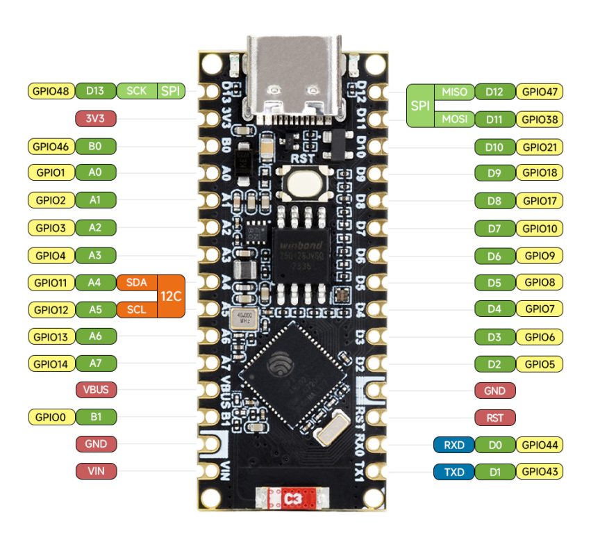 ESP32-S3-Nano využíva čip ESP32-S3R8 a je plne kompatibilná s vývojovou doskou Arduino Nano ESP32. Vďaka svojim kompaktným rozmerom a vysokému výkonu sa skvele hodí pre aplikácie v oblasti IoT (internetu vecí). Vďaka podpore programovacieho jazyka MicroPython ho ľahko integrujete do akéhokoľvek vlastného projektu.