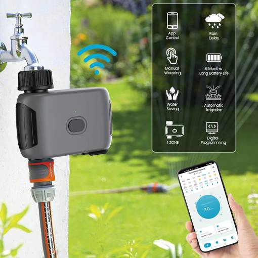 Vďaka WiFiu00a0komunikácii s aplikáciami TUYA alebo SmartLife môžete premeniť svoju záhradnú hadicu na plne automatizovaný zavlažovací systém. Už žiadny povadnutý trávnik či záhonok. Ovládajte zavlažovanie podľa individuálne nastavených časových úsekov, alebo aj podľa aktuálneho počasia!