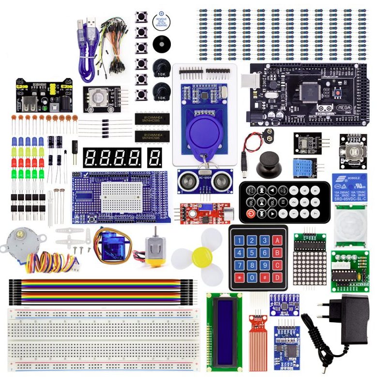 - Rôzne elektronické moduly a komponenty vhodné pre MEGA 2560 vývojové účely