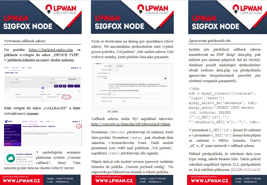 V?[[BAD:0x8F]]aka nemu pripojíte modul Sigfox do po?[[BAD:0x8D]]íta?[[BAD:0x8D]]a po?[[BAD:0x8D]]as minúty a prvé dáta odošlete veľmi rýchlo. Sú?[[BAD:0x8D]]asťou dodávky je manuál písaný v slovenskom jazyku, kde je ukážka prvého odoslania dát práve s novo dodávaným prevodníkom.